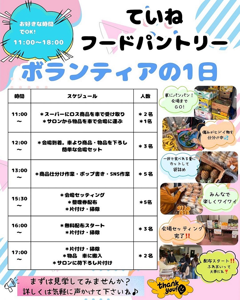 食品ロスを削減し、個人や企業から直接食品や物資の寄付を受け、食品や物資